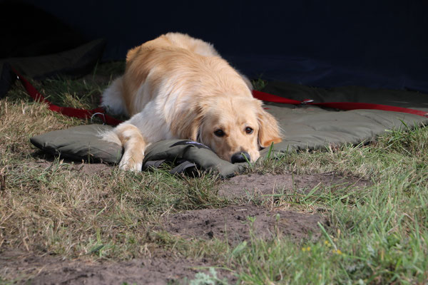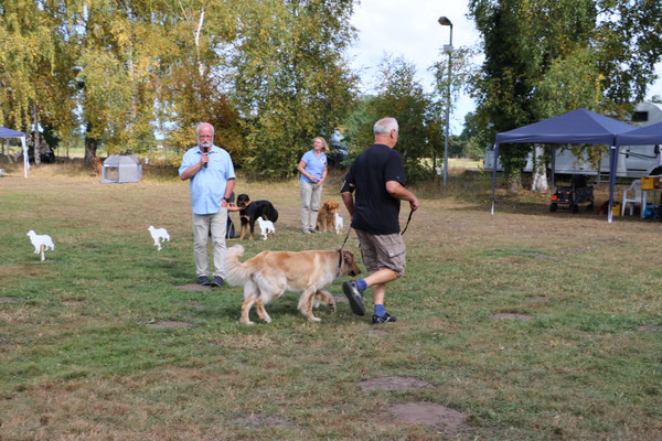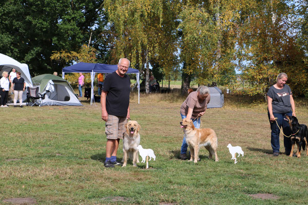 Man sieht, aus dem kleinen, fast weißen, frechen Kuschelwelpen ist eine stattliche Hündin geworden, die vom Körperbau sehr viel von ihrem Vater Hermann geerbt hat. Es sieht so aus als ob sie genau so wird, wie wir es uns vorgestellt hatten. Sie ist kräftig, hat eine beeindruckende Stimmlage und geht ihren Wachaufgaben auf unserem Hof mit aller Ernsthaftigkeit nach. Darüber hinaus ist sie sehr gelehrig, versucht gerne auch uns das Ein oder Andere beizubringen und ist sowohl Mensch als auch Tier gegenüber sehr gut sozialisiert. Sie wird in einer Quasi-Rudelstruktur von ihrer Mutter Kate, ihrer Tante Clärchen und uns zwei Zweibeinern erzogen. Das funktioniert sehr gut! Sie hatte gerade jetzt mit 15 Monaten ihre erste Läufigkeit und man kann sie daher schon ziemlich, auch wenn sie für uns oft noch "das Baby" ist, zu den Erwachsenen zählen. Wir planen mit ihr in Kürze die Verhaltensprüfung 3 zu absolvieren.